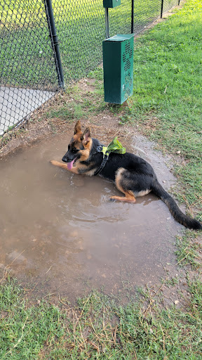 Large area. If you get there when there are no dogs, yours can run free. Mine isn't especially social, but she does fine on a leash. They have some jumps, platforms, and tunnels to use with your dog. The water supply for the dogs isn't working, but otherwise, it's a great place. Okay, update. My dog is much more social since I've been taking her to the park. She does well interacting with most other dogs. The park has had a good supply of clean-up bags, but many choose not to use them. Someone brought a plastic bowl for water, and that is...