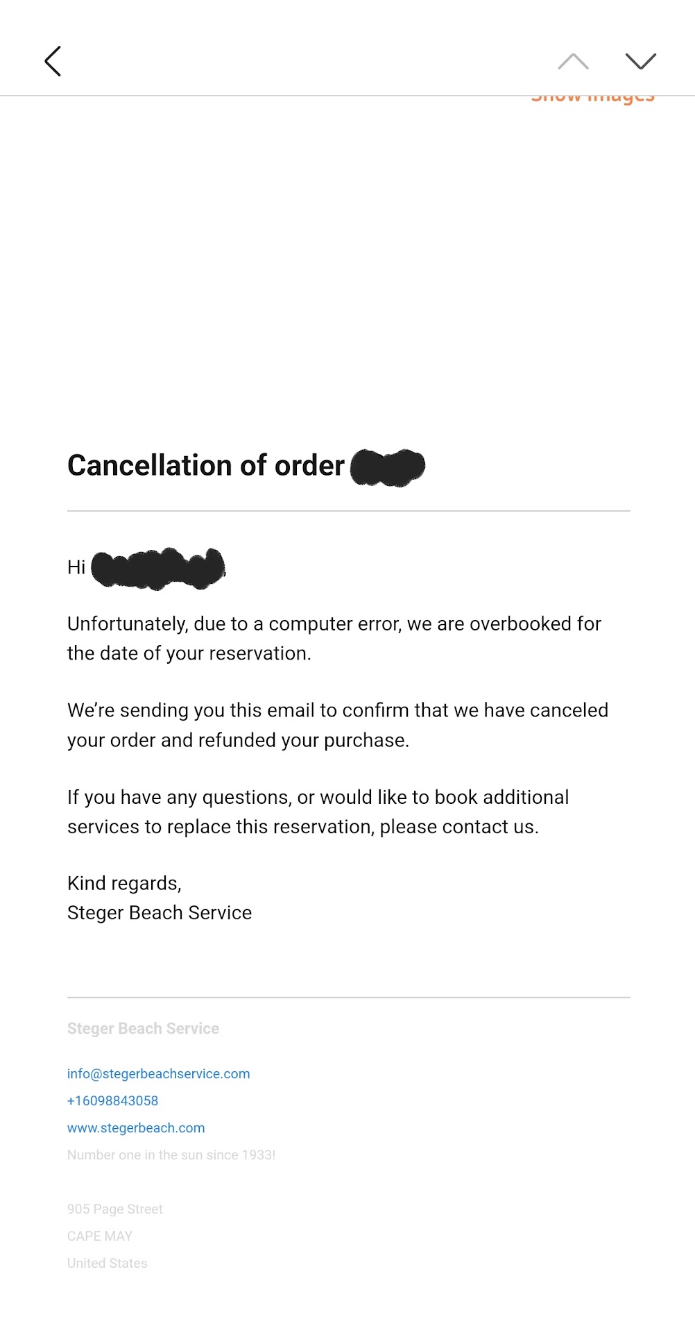 After over 20 years of renting a seasonal beach box I was told I couldn’t be accommodated this year either... I actually did receive a mailing and letter stating that since I was a loyal customer they would HOLD my reservation until 5/29! Great! Thanks! So I sent in my check in early on 4/30! Week before Memorial Day and no box. I called and left a voicemail and emailed inquiring if they received my info- finally ‘Carl’ called me back and started the conversation by telling me they received my info too late! I asked about the letter and he said oh they changed their mind, and shouldn’t have sent that. ‘Carl’ blamed me saying I sent it too late, took no responsibility and could have cared less. Then hung up on me when I pressed for a better response (frustrated yes- aggressive no). Ok ‘Carl’ I’ll carry my chair- and the Stegers can make more money on the weekly boxes and rentals. If I was late that would have been my issue but I received a letter saying they were holding it! I guess they didn’t care if I was a loyal customer or not! Save your money, bring your own chair and umbrella. Their letter clearly stated they were holding the...