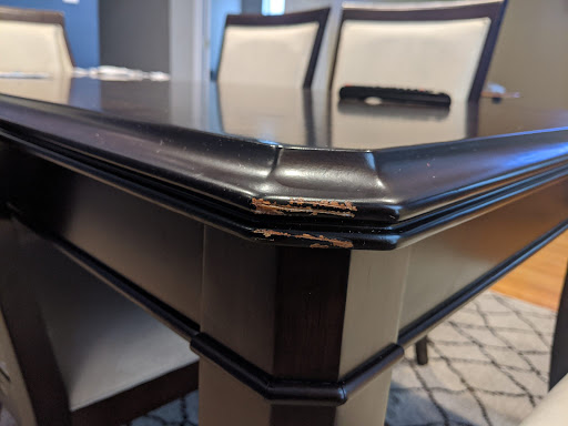 I later began to receive texts/emails again regarding an upcoming appointment for 2/13 from 10-30am-12:30pm as if I did not request after 4pm. To be flexible and be done with this horrible ordeal my daughter was able to modify her schedule to be home at this time. Once the technician arrived he noticed that a chair was delivered damaged and I was contacted at work. I requested a new chair immediately. He refused to order a new chair and told herâ I color it inâ.