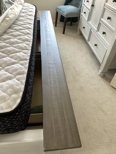 3 weeks later, my tempurpedic mattress came in without the headboard. The shipping team informed me that they could not install the bed without the headboard and now my bedframe is in my garage and I'm sleeping on the floor. Also, the bedroom dressers have extremely low quality! The drawers make loud crumbling noises as I open and close them. One of the drawers doesn't even close completely shut, there's a huge gap unless I close it in a specific angle lifting the box up while pushing in. What a total downgrade from the bedroom set I bought at another furniture store.