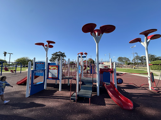 Great playground for toddlers and kids. There are two playgrounds. One for little and one for older kids. Large park but play area is cute and small with ladders, slides, some swings, a see-saw, and some climbing obstacles.Large tree provides shade around the 6p time. Only had one incident here with a rude child and parent who wasn’t watching their child. But people will be people. Great and easy parking with two handicap parking spots. It’s a great park for what it is and isn’t too crowded during the week...