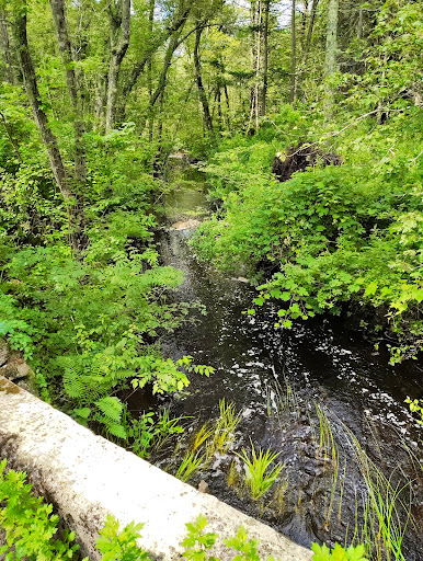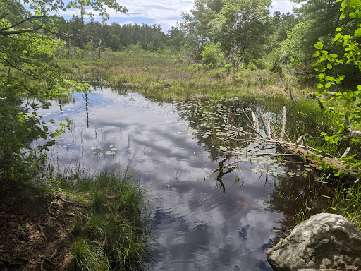 Nice peaceful easy hike, entered off route 3 at burnt sawmill Rd. Took the main road down to gate and saw the waterfall from the, I would assume, old sawmill on the left. Spotted a water snake and lots of lily pads and flowers. Continued down main path and took a left onto a trail through a field and into the woods. Although I had my phone with me we didn't venture too far, took a left after crossing an old bridge, then a right after going uphill and then down. We got to another crossroads and decided to turn back for fear of getting lost. I have little sense of direction, and my kids know it, lol. Found an old family cemetery too, from the 1860's. Trails were well worn but not well marked. So peaceful though, next time I will pin my car location to maps so we will be less uneasy...
