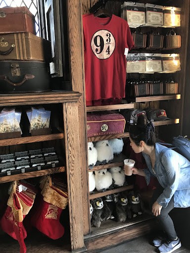 The train is only of the first train car (locomotive). So it’s not designed to board onto unlike the Hogwarts Express in Florida. Even the design of the wall mimics a tunnel and looks as if the train is coming out of it. The gift shop mimicked the train station. There is a posted train schedule near the entrance. They even had ticketing windows inside gift shop, well they were actually the cash registers. The shop sells a bunch of platform 9 3/4 and Hogwarts Express merchandise.