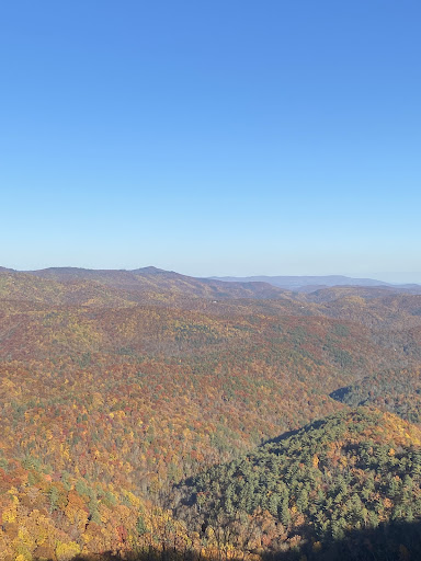 Jumpinoff Rock Overlook follows the same style and looks like most overlooks but it does have picnic tables on both ends of the overlook. It also serves as a brief host to the Mountains to Sea Trail, like many of the other overlooks.