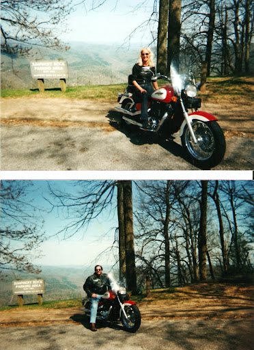 Read more"Laura & Preston", Jumpinoff Rock, April 2004 estimated... I never pass this overlook without remembering when my Laura (Laura Hill King, of High Point, NC... 1957 - 2014) and I rode the "Wolfpack Bike" up from High Point for a near-perfect early spring day of riding the Parkway and "just being together". We snapped photos of each other sitting on the bike, as we were the only ones there at that moment, as I recall. How much I would give to be here again with the love of my life, who I - and all of us - lost in May of 2014, suddenly and without warning. A beautiful spot, here, that I've solemnly, thoughtfully yet sadly visited several times, "just to remember", since then. Thanks for letting me share this little remembrance........... Preston D....