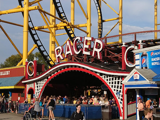 It's the "ONLY" Roller Coaster that My Lovely Wife would ride. We did RIDE IT TOGETHER & We WON the "RACE". It is a SUPEBLY BUILT WOODEN COASTER & it rides VERY SMOOTHLY. It was the 1st Coaster that I ever rode as a KID. KENNYWOOD PARK always had the "BEST ROLLER COASTERS" in the Country. The "THUNDERBOLT", The "EXTERMINATOR", The "JACK RABBIT", & The "PHANTOMS REVENGE" Among other SUPER COASTERS, Are STILL some of the MOST POPULAR ATTRACTIONS at "KENNYWOOD PARK". But, MY All-Time FAVORITE COASTER still remains to be The "RACER". Hearing the CLANGING of the TRACKS & the EXCITED CHEERING of the RIDERS as we CLIMBED up to the top of the LONG HILL. After The "RACER" Finished it's EXCITING RACE, Riders from BOTH COASTERS High-Fived Each Other. WIN or LOSE, Every...