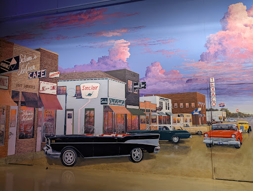 Read moreIf you've never been to Okoboji Classic Cars I recommend it even if your not an automobile enthusiast. It is packed with antiques and collectibles not to mention the art work. It is the largest known mural painted by 1 single artist. Gabby and I have been there 3 times this time we didn't pay a lot of attention to the cars we found our selves more taken in by the attention to detail in the artwork. When you first enter the museum your walking down main street Spencer before the big fire that wiped out Spencer's main street. You look into the soda shop and there's people sitting at the soda bar, the Chevrolet dealership has cars on the show room floor the hardware store has painted pails full of bulk screws and nails the neon signs have been restored and put on the businesses. It's truly amazing and every employee we talked to had a great attitude and appreciation for what they get to...