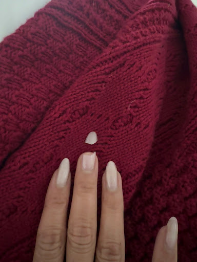 Every single finger has a nick! Do you see the indentation on my pointer finger too? Never had that happen in the 20 years I've been getting my nails done. He drilled into my actual nail. HOW?! He has left my nails and cuticles so sore-- beyond the usual tenderness of the nail bed when removing long-term acrylic.