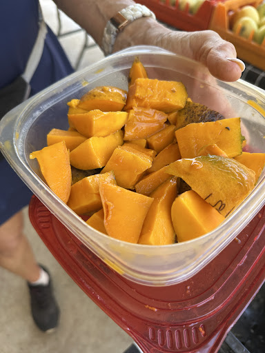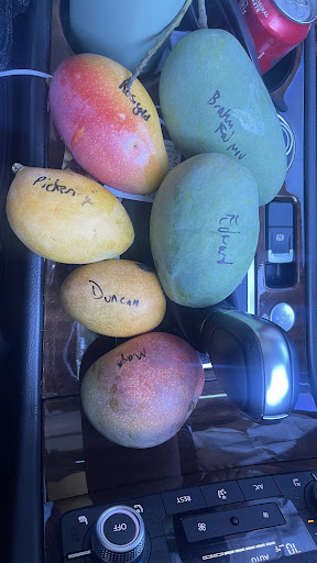 They didn’t offer us a try-before-you-buy sample, but we picked one of each mango we liked based on their advice. We tasted them in the car and decided to buy more. Most of the mangoes weren’t ripe yet, so we know it will take a few days for them to ripen perfectly.