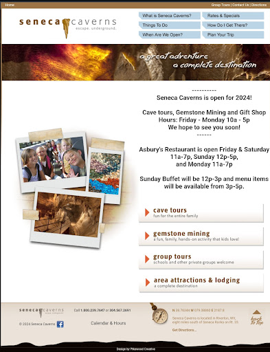 I visited on the first day of Fall 2015. About a 20 minute drive from Seneca Rocks, Seneca Caverns offers a nice detour from the waterfalls and scenic mountains and valleys that cover this entire part of the state of WV. There's a decent amount of parking at the gift shop and restaurant, which is just next door. Tours, in the slower season, run at the top of the hour and take about forty-five minutes to an hour. Be sure to call ahead - from somewhere, while you still have cell phone reception - to verify that day's schedule. I missed the tour by fifteen minutes, and waited forty-five minutes for the next one. The quaint gift shop and ample restaurant will help you pass the time. Speaking of losing cell phone reception, print out any road maps, trail maps, and directions you need before leaving home.