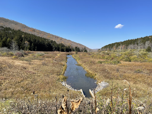 Read moreThe lake itself is beautiful and many people come here to fish. It has a restroom (no flush) and a trail circling the entire lake. The only problem is that the road to get in and out is made of gravel and there are potholes everywhere. We came from the direction of the spruce knob. Saw a sign of the lake and didn't expect the entire road to get to the lake, about 4-5 miles, were in such terrible condition. Also, you'd better download google map for off-line use, because there is no signal at all for navigation. Even with my off-line map, I still feel very unsure if I am on the main road. We kept running into big black cows on the road...
