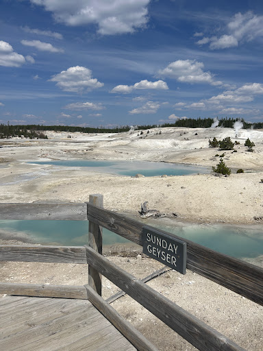 With how similar Sunday looks to the Colloidal Pools, you wouldn't even think it's a geyser. Upon reading some history; Sunday Geyser apparently used to erupt in the 80s commonly and is thought to be one of the oldest and hottest geysers around. You can see the Geyserite formed on the inside walls of the geyser, and apparently the colors change quite often and...