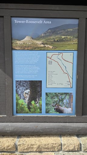 A very short 500-foot walk to the overlook along a paved path making it a nice easy walk with breathtaking views of the stunning 132-foot Tower Falls. The full trail is 1.2-mile round-trip and is both paved and unpaved after reaching the overlook. The trail then becomes a moderate hike with switchbacks down the mountain for several hundred feet. However, you will not be able to hike down to the river only to a landing overlooking the Yellowstone River. The trailhead is easily accessible from the Grand Loop Road, making it a great spot to stop and stretch your legs while taking in the natural beauty of Yellowstone. With its unique rock formations and picturesque falls, Tower Falls Trailhead is a must-visit destination for any...