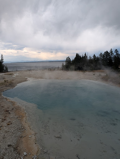 This is a must see area when you visit the park. There are many kinds of thermal features next to the beautiful Yellowstone lake. A small herd of elks live in the woods along the shore and come to visit this area often. Ample parking with toilet. No...