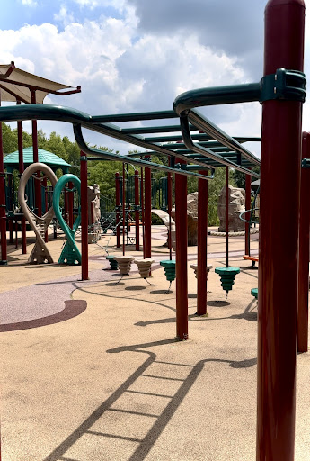 Read moreIt's showing its age a bit, but this is a really great park. It's huge, and there are so many options- tons of slides, swings (including adapted swings), monkey bars, musical instruments, a seesaw, climbing walls, a balancing log, large rock structures to climb, tunnels, things to spin on- you name it, this playground has it. there's also a separate natural play area, a small shelter house with picnic tables, and restrooms. The one thing I don't like is that there's only one set of normal stairs, at the very far end, to get on to the main play structure, so less adventurous caregivers (read: adults who don't want to follow their charge down a slide, but may break something trying to climb down a rock wall) can only take the one set of stairs to get on or off. There are two other places to get on or off that are similar in difficulty (ramps), however the playground area is set down further than the sidewalk around it, so you either have to go out around the wall created by the different elevations, or brave the several foot drop from the top of the wall to the playground floor. Other than that, it's...