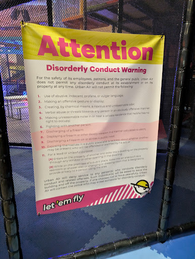 For example, review item number 8 in the code of conduct. If you bring your firearm to Urban Air, you're free to show your gun to others, but it isn't cool to intimidate people with your gun.