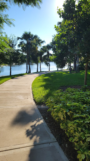 This park is is the site of a Tequesta burial mound. The city of Weston has honored this history with a series of informational plaques in the path that wraps around the south end of the park. The plagues are very interesting and I actually learned some things that I didn't know. After the Tequesta left this site it was used by the Seminole's. Today there is a beautiful park here with a nice view from the top of the hill to the lake below. The park has a fishing dock, a playground for children, and plenty of benches and lawn space to enjoy a picnic. A paved running/ walking path winds around the park. The park is beautifully landscaped and filled with many flowering trees and plants. Ducks inhabit the pond and they are clearly used to being fed because they have no problem coming out of the lake to run right up to you to give you the sad eye. This beautiful park is another reason to...