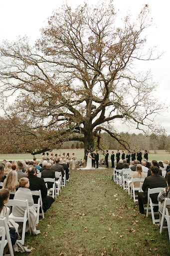 Such a beautiful venue! Such a beautiful location! From the quintessential timber clad chaple interior with it's charm and elegance, located at the top of the little rise alongside the picturesque pond, complete with cattails and other pond flora, behind a hundreds of years old oak, to the exceptionally maintained gravel roads and walkways meandering amongst the trees on the forest floor, to the open air reception pavilion, fire pit, and bespoke support building housing restrooms and changing areas and the catering facilities, nestled amongst gorgeously maintained hydrangeas and roses and crepe myrtles, all facing the perfect meadow and grassy field, and still all of this surrounded by forests and more!! There's just no other...