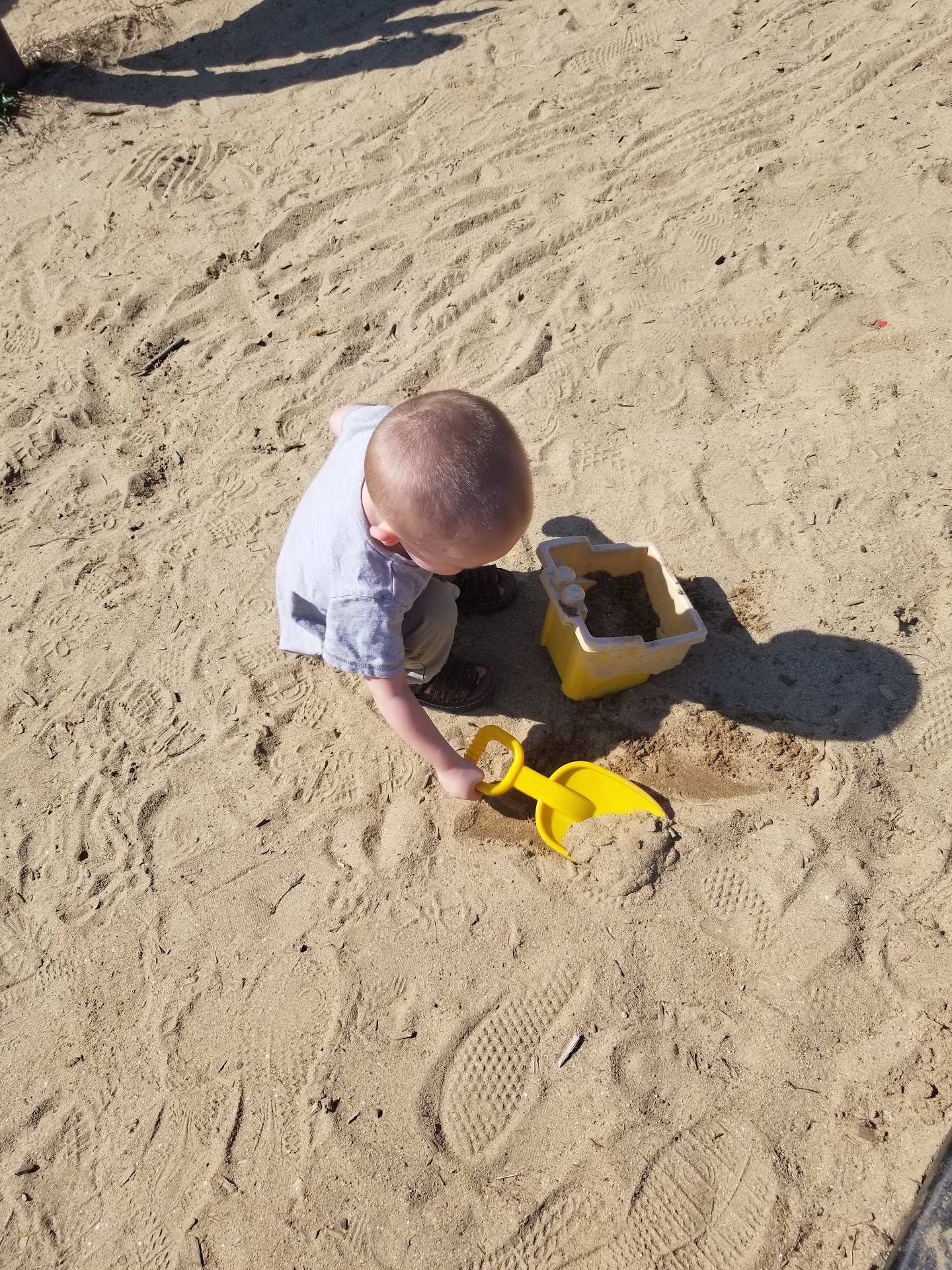 Perfect place to bring a packed lunch and spend a good amount of time playing (if you're a kid) and sitting in the shade (if you're a parent) lol. Love the fences and separate play areas, the huge grassy green is perfect for letting them run/play tag/sit and snack. Did not feel crowded at any point. I also felt good about the amount of space put between the park and the road and parking. I always feel on edge (can't sit) if I am unsure that I can outrun my littlest one were she to go rogue towards cars...that is not the case here!!! Ample grass between her and any traffic. We were there until about 4:30 on a Thursday and just before we left a farmer's market was opening across the street! We'll plan to bring cash and do a little shopping next time for sure! ...