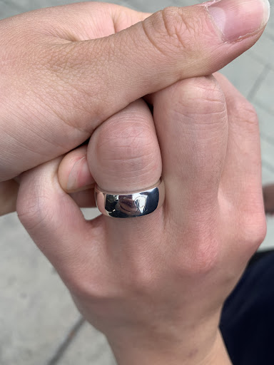 I originally bought a custom made silver band in Mexico, however it was nothing like I envisioned. The band had a silver letter “A” on it with odd texture, the cut from adjusting the ring was super visible and was messy and the ring didn’t fit my partners finger 😓 I was so disappointed.