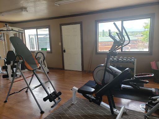 All of the amenities are located near the front of the campground. The office building contains a small convenience store, a laundry room, and men's and women's bathrooms with key code access. In the road between the southern row of back-in sites and the southern ends of the pull-through sites is the propane refill station, a pet wash enclosed in a small shack, and two dumpsters. Just north of the office building is a gym with a variety of exercise equipment and a TV. Across from the office building (on the east side of the campground) are two shaded outdoor seating areas around fire pits and a stylish two-story barn-shaped building with a hangout area on the bottom floor and table games (ping-pong, pool, foosball) on the top floor. Adjacent to the barn building is a playground, a single basketball hoop above a concrete playing surface, a horseshoe pit, a small mini-golf course, and an astroturf lawn with a set of duckpins that resembles an oversized ground-level pool table (never discovered what the actual game was).
