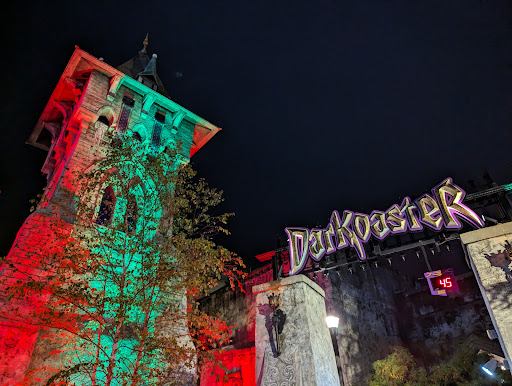 The lighting in general is exceptionally poor for an indoor ride. Verbolten is an indoor/outdoor ride and yet the indoor portion is properly dark enough to hide most of the indoor architecture. DarKoaster is the complete opposite, where there is so much light pollution that you can see nearly the entire track. Even the exit pathway comes right up near where the coaster ends and you can see into the showroom entirely.