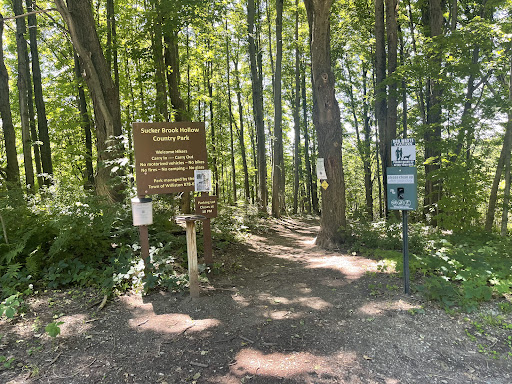 Beautiful trail that took us about 30 minutes up and 30 minutes back down. It's dog friendly and we saw about 10 or so people today. It's spring and the ground was a little frozen last night but began thawing as we began our hike and by the end it was fairly muddy but I believe it won't stay muddy once it gets warmer as there is no more snow melting. The view at the top is spectacular and it has a park style bench facing the view west over Williston, Shelburne, South Burlington, Charlotte and Lake Champlain. It's a great trail that wasn't too difficult and would be fine for children. It had about a 20 car parking lot. I have been wanting to hike/walk around 5 tree hill which is very close to this but I was told by some friends that Sucker Brook is a better hike and after the great experience I had today I believe them. All in all it was a great experience and we will be hiking...