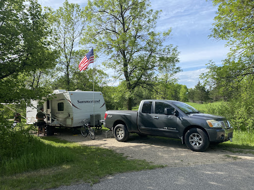 We had booked online through the reservation system. Once we arrived we checked out the site we had reserved and decided to change to the other campground. Had no trouble doing that. Even though things in Minnesota have opened up (late May 2021) the office is not open. Staff did drive around quite a bit. We saw the bathrooms being cleaned regularly but we have a trailer so I did not need them. The sites were not mown, and the second day of our stay, Tuesday, they begin mowing and came and mowed right around our camper and pickup. Fortunately we did not get hit with rocks or anything but there was a lot of dust blowing around so I found that annoying. We have noticed both days of our state that someone is sitting in one of the park ranger vehicles wearing a headset behind the office. Saw them every time we went by yesterday and today. Not sure what that is all about. Overall this park is fine but it is not as nice as some of the others we’ve stayed in. However the lake is nice, the beach looks great, and the trails are all right. There’s a bit of construction going on and we could not bike the paved trail through the park as it was being worked on as well. We asked the staff about it and about how to find a connection with the glacial Lakes Trail and they weren’t as helpful as I...
