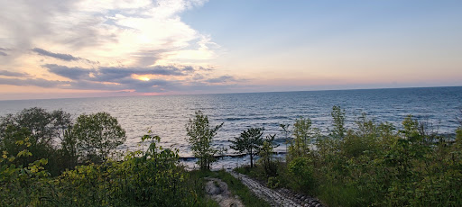 This place is a great little spot in the area to catch a sunset over the lake for those who don’t have property right on it. I was walking from an Air BnB not far from here after eating at Petie’s and was pleasantly surprised to see it there on my way back. It’s got a very short path along the lake’s edge with benches. There is also a gazebo, picnic tables, and an open grass should you want to have a picnic. You will also find a police dog memorial and some information about a boat accident that occurred not from from its shore. I think my favorite spot is on the wood awning though. The railing is tilted and at a perfect height - making it very comfortable to just lean on and watch the seagulls and wave crash below while you peak at the city to the left.
