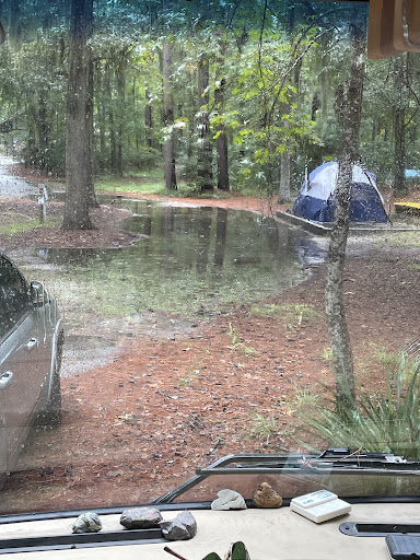 Read moreThe grounds are beautiful and it is quiet. However, the grounds are poorly maintained. Some sights turn into ponds when it rains, the raised areas for tents are poorly designed and fill with water. Trees are close to the edges of mostly very narrow roads, so be careful if you have a tall RV, you can see places where others have hit and likely destroyed their rigs. The roads have huge humps from tree roots and you should go very slow if you don’t want to rearrange...