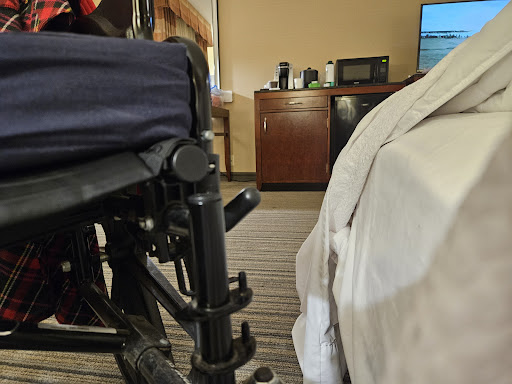 In answer to your reply, perhaps I was not clear enough about my situation. I was declared physically disabled by the Federal Government in 2022, due to spinal injury: I have since been in permanent use of a walker, and more recently, a wheelchair, due to further fractures, as well as dealing with limitations in mobility, due to the recent surgery. And while my husband can usually assist me in getting from bed to wheelchair, it was VERY DIFFICULT for him to get me standing FROM YOUR LOW BED, ( see my picture) OR STANDING FROM YOUR COMMODE, something I would not expect from furnishings in an "accessible" room. I do not think your answer of my getting a "standard" room would have been in any way helpful; perhaps if you discussed this situation with your other manager, Marvin (who was at the front desk when we were leaving, who we spoke with about this situation and who seemed to have a clearer understanding of our problem than you do) : he said he would check this with your team ( esp. about the missing box spring?!) ( YOU MAY ALSO WANT TO REVIEW your responsibility with regards to THE AMERICANS WITH DISABILITIES ACT (ADA, TITLE III) ( State and federal laws give people with disabilities the right to access everyday activities, such as buying items in a store or staying at a hotel)