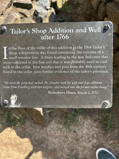 Read moreMy two buddies and I visited the Historic Bethabara Park this weekend and were very satisfied with what we found. Not only did we learn a lot about the early Moravian settlement, but we also formed connections to our Experimental Archeology course. We found it interesting to learn about all of the different buildings that used to be in the area/still are in that area, and how they laid the foundations for some that are no longer. The whole site is really an example of experimental archaeology, as foundations, buildings, wells, and walls have been reconstructed in their original areas as a means of preservation. In one of the photos linked there is a plaque with a description of the Tailors Shop. The description says “Iron needles and pins…gave further evidence of the tailor’s presence”. In our class we have read about the use of experimental archaeology and artifacts, and how artifacts can be analyzed, and this final statement on the Tailor’s Shop description perfectly exemplifies experimental archaeology. Overall, I am really glad that we took this trip. The park was beautiful, and the day complimented it. With great weather, the park was easy to navigate, and it was super interesting to read each description of the buildings and learn a little about the history...