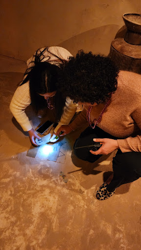 After get a quick rundown of rules from Maran (who was an awesome host), we donned our hazmat-look-a-like suits (see attachment), our goggles, and our canvases. Inside the black room covered in graffitied art of those who came before; we were given brushes, and cups of neon colored paint under the black light of the room. To make the experience even more fun, we could play any music we wanted by simply asking Google through the surround-sound system in the room.