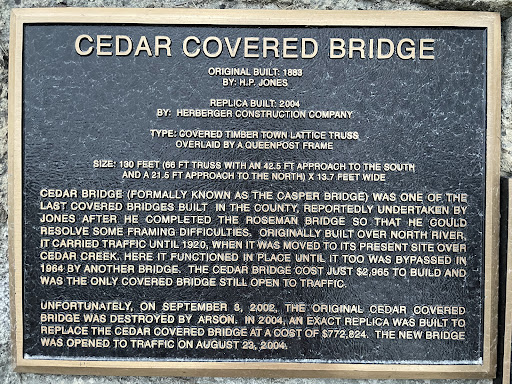 Read moreThe new bridge looks great! Its so peaceful there. You can have a picnic beside it and your kids can play in the play area. Alot of people take family photos there or graduation pictures. This landmark is here to stay. The Covered Bridges mean alot to Madison County. People come from all over the world to see our Covered Bridges. You just cant go through Madison County without stopping and seeing them. Each one is unique in their own way. I recommend coming and seeing them. You wont be...