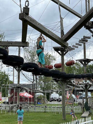 Truly a great experience for the whole family. The kids course was an excellent intro for most ages and although simple somehow kept the kids occupied for the whole two hours! There was a tiny playground for the youngest kiddos (our two year old had a blast), and though he was too young to physically climb the course he was allowed to do the Zipline. The higher levels were technically open for any age, but definitely some balance skills and comfort with heights are needed. There is a fair amount of clipping and unclipping to lines which is an excellent safety feature, but also means that younger or shorter kids definitely need an adult helping with the safety lines. Awesome overall design and fun giant Ziplines going into the woods. I also really appreciated the kind laid back staff, especially the owner who was very accommodating to our reservation which had to be moved twice. It really led to a fun relaxed atmosphere to the day while trying...