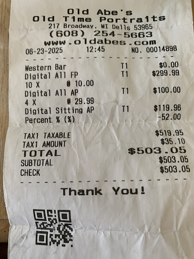 Read moreMy granddaughter, husband , and I went to the studio on July 28, 2023. We talked to the salesperson, sorry can’t remember her name , sweet and pleasant young lady. We decided what we wanted to do , the bar scene , with cowboys and dance hall girls . We picked out our costumes, went and changed into them , in the ridiculously small changing rooms . I was the first one the photographer wanted to get posed for the picture. She asked me to step up on wooden box , and get on the bar . I went to step up on the box , it slid in one direction, and I fell hard in the opposite direction. It scared our photographer, she was shaken up , and quickly came to assist me . My husband helped me up , and of course he was livid . The photographer went and got this older woman from the back . She half heartedly asked if I was alright, I said yes ,I just hurt my leg and arm . When I fell down my leg hit the corner of another wooden box , my arm hit the bar , and my whole body fell into other props , all on a hardwood floor. The older lady said no one has ever fallen , in the years they had been in business! Well I took that as I must of done something wrong, so it had to be my fault . Then she said to photographer , if the customer doesn’t want to get on the bar , don’t put them on the bar! I told her the photographer didn’t ask me if I wanted to get on the bar , and I didn’t say no I didn’t want to get up there . She kept ranting at the photographer, final I told her it wasn’t her fault . In spite of the pain I was feeling , I am 54 , I am no spring chicken, don’t bounce back after a fall like that quickly I was trying to defuse the situation , to calm my husband down , and to comfort my granddaughter, and the clearly traumatized photographer. I had a large bruise on my leg and arm , which took 2 weeks to go away. We went on to take the pictures , sorry no fault to the photographer , they weren’t that great, you can clearly see in the pic , I was still shook up from the incident. The old lady didn’t even offer us a discount on our pictures or anything, she was just rude !! Won’t be...