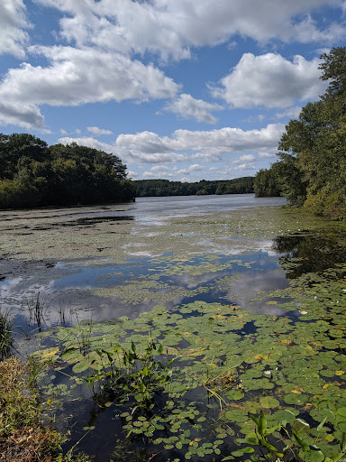I came here to kayak and explore the area. The parking lot on Scovill road is a dirt/gravel lot with enough space for say 20 cars. There is a small boat launch and a walking path along the perimeter of the lake. The actual kayaking was not that enjoyable, half of the entire shoreline starting from the boat launch and going counterclockwise is boulders and shallow water so its not really possible to get close to that shoreline and i was constantly hitting bottom and rocks that were sticking almost up to the surface. The water was really shallow that even 100 feet from shore in some places i was scraping bottom. There is much more area than I expected that was less than 2 feet deep. There is a tunnel that goes under the road on the north side into a swampy are that is nice to paddle around, watch for spiders...