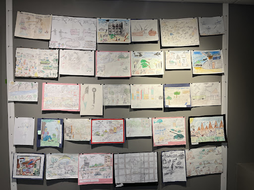 Most moving are roughly 200 drawings by Gazan children, their colorful crayon sketches depicting flowers to family scenes—normalcy rendered extraordinary by circumstance.