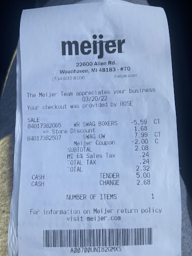 Read moreJust came back from the Woodhaven Mi. Meijers and as usual, the produce there was substandard. Bought 1 (soft) green pepper for .99 only because needed it for a recipe. Bought 1 bag of scrubby narrow carrots. Went to Trentwood on my way back home and bought a large FRESH green pepper for .88 ! Trentwood is usually higher in price - but I’ve been noticing lately that Meijers prices are going up passing Trentwood Farm Mkt. and the quality at Meijers is going down, down down. The quality of Krogers produce in Southgate is much better than Meijers. You guys just spent a fortune on remodeling this store and you screwed its up royal! Before the area where your bread was located was great. Now it’s scattered all over the place. After today I’m doing my shopping at Meijers in Southgate and if that store does what your store did, I’m going across the street to Krogers where I have to put up with their dingbat hidden coupons that you have to sign in on in order to make it happen. It’s a damn shame DOGE can’t do a number on...