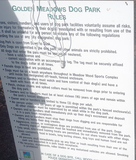 Five stars? Really? But it has no grass! And it has no water! I know I know, but it does have two big trees and more importantly than that it has a bunch of little bitty trees and even more importantly than that if you look at the dog park sign it was a girl scout Gold Award winner, it was sponsored by a local bank and a bunch of other local people, dog benches were all donated by somebody in the name of one of their beloved pets oh, and there is even a bench in there that looks like it was donated by a dentist office? Either he had a lot of patients from this dog park or he understands the Loyalty a dog has for its owner and therefore the Loyalty the owner normally has for the people that do things nice for the dog, and the owner, just decided this maybe an incredible way to spend some of his advertising dollars? But anyway, I'm not really from around here no, but if you're moving here and you need to know the name of a good dentist or a good bank I got a couple I can certainly recommend based on my experience with them!! There seem to be plenty of water in all the bowls but you do need to bring some if you can. I didn't know what the little wood boxes were for hanging on the poles with the trash cans, but then I opened the lid and saw the plastic bags inside, hey I saw this small scooper things at the bottom and thought maybe, well, it was a spot for us handicapped people to be able to hahaha no...