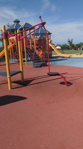 This park is really nice, my kids love the water play area & I like to join in the fun with them too. Great way to cool down. The covered picnic areas are a good size. There is a lot of open grass area for a variety of activities & sports such as soccer, catch,my kids like to play a game of football, theres plenty of grassy area to set up a volleyball net. Or just to set a blanket for a little picnic. Theres also a playground for smaller kids and another one for bigger or older kids. The playgrounds have a rubber like flooring which is safer for the kids &their barefeet enstead of woodchips or sand. I only gave it 4 stars because the total area of the whole park is pretty big and it is very popular in the summer theres a lot of people &partys which is great BUT theres only 3 covered picnic bbq areas and there is plenty of room to make at least a couple of more covered bbq picnic areas. Another reason i i only gave it 4 stars is because other than the 3 coveres picnic areas, there is not any shade to sit on the grass with a picnic blanket or fold up chairs you know to sit and stay in close view of your kids while they play in the water. The single benches around the water play area are in direct sun. There isn't any shade until after 6 or 7 pm...