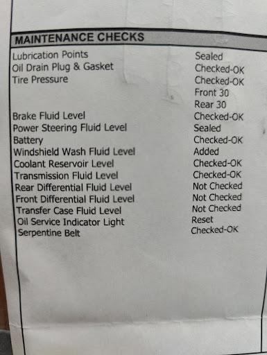 Read moreFirst, they didn't know any of the common diesel oils or the comparable products they offer. Then it turns out they arent even qualified to change my fuel filter. By the time they were done, the technician had to ask me if the oil level was correct. They also spilled oil all over which caused a burnt oil smell, which made me think I had burnt the engine next time I drove the truck for any significant time. Lastly, they tried to tell me I need to come back in 3k miles to have it changed again (manual says 7,500 miles between changes).