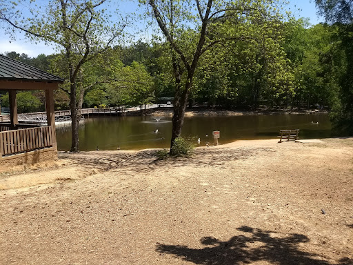 Read moreThis is a park that my 1.5 year old son and I visit regularly. There is a paved walking trail that is 1/3 of a mile for one lap. There is a disc golf course throughout the park. There is a station with exercise equipment near the walking path. There are 2 bathroom houses. There is also a playground that has a upper and lower level. Both are Wisconsin for ground surface. The bottom level is styled like a pirate ship. I heard of someone having a pirate themed birthday party there. They also have two machines where you can buy food to feed the ducks and geese, one on either side of the pond. This is a highlight for my toddler. It cost 1 quarter for a handful of food, so make sure to bring some change. There ample, close parking. It's always very clean, with little to no litter to be found. As someone else mentioned, there is no drinking fountain. And the playground equipment doesn't have any shade, so the slides get kind of hot in the summer. Other than that, it's a great park for stroller rides and playing...