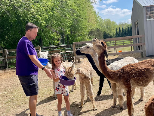Our 7-year-old daughter loved her hour-long visit. We had the chance to feed, pet, and interact with the alpacas. We got to see Sally and Mike's two horses and visit the gift shop in the barn.