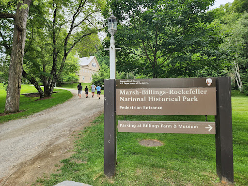 We visited on a Thursday morning in late June 2025. We parked across the street at the Billings Farm & Museum which is a private establishment but works along with the NPS. In the parking lot there is a NPS booth that gives info on the Marsh-Billings-Rockefeller National Historical Park. It is staffed by volunteers and they can give you info on what you need to know. I think a lot of people get confused and try to go into the Billings Farm & Museum. NPS does house it's short film in the theater inside the Billings Farm & Museum that is free of charge. You just walk in and turn right.
