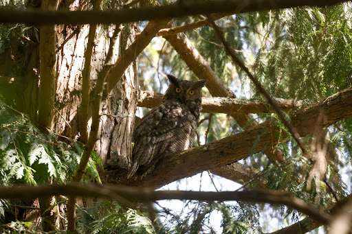 There is a pair of Great Horned Owls if you can find them. Pretty active wildlife with very tall trees. Nice place to visit for a break from city life