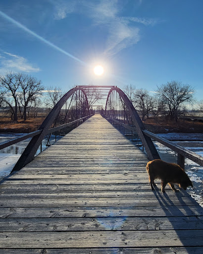 A neat site near Fort Laramie. This site is about 2 miles from Fort Laramie. It is right off the road on you way to and from the fort. There is a small pullout with room for about 6 vehicles. It had and information board telling about the bridge. When we went there the leaves were yellow and it was a cool day out so it was very pretty. This is an iron bridge with wooden planking. You can walk out of the bridge and enjoy the sights and sounds from the middle of it. There is a 1.6 mile trail that leaves from the pullout. Worth the stop if you are going to...