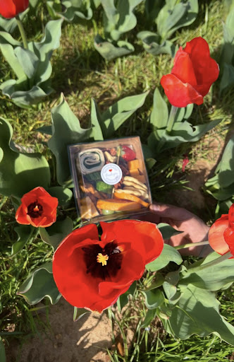 During my visit, I had opportunity to set up my mobile charcuterie business, and the environment couldn't have been more conducive to a thriving atmosphere. The farm provided ample space with stunning tulips in the background allowing me to showcase my artisanal offerings beautifully.