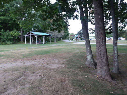 What a nice place for a gathering of friends and family. Lots of open grass, trees for some shade, picnic tables, with several little paths toward the falls and river. There are some Park benches of a sturdy weather-proof construction donated by several families. I noticed one bench donated on behalf of an L.L. Bean founder. I only noticed one potortable potty, should be more, but only noticed ONE !