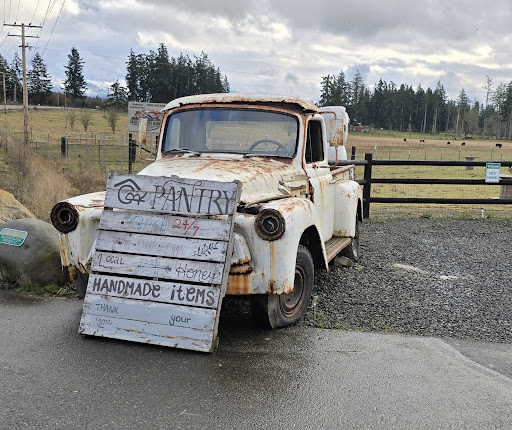 We just moved into the area and I drive past this place every day on my way to and from work. Finally decided to top and take a look. It's adorable and just awesome how they have it set up. It's self service and they take cash or card or app. They have meat, butter, eggs, cheese and lots of other things all looking to be locally made or sourced items. They also have snacks and things that look hand made like jewelry, candles, and books. Prices seem reasonable since it's all home grown and natural. I purchase a half rack of ribs and used their wall iPad to pay by credit card. It was very easy. Tasted great! We will definitely be stopping regularly...